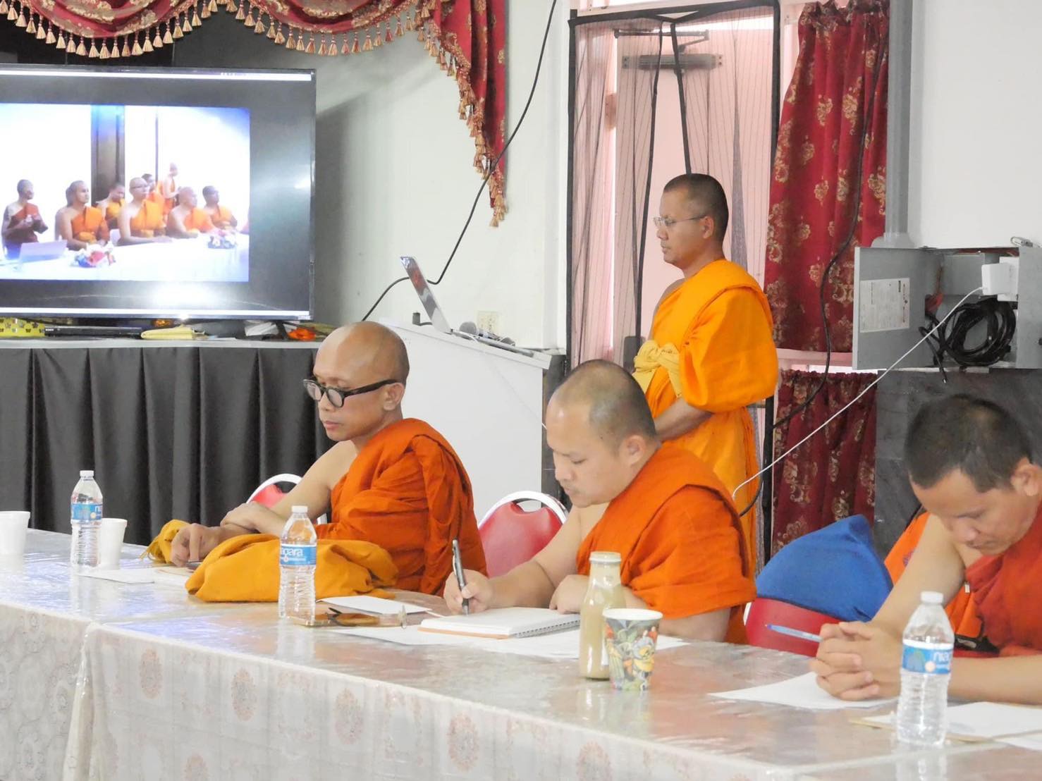 เมื่อที่ประชุมพร้อมแล้ว พระมหาสมบัติ อินทปญฺโญ รับหน้าที่ดำเนินรายการประชุม ชมวิดิทัศน์เกี่ยวกับองค์กรของสมัชชาสงฆ์ไทยในสหรัฐอเมริกา จบแล้ว