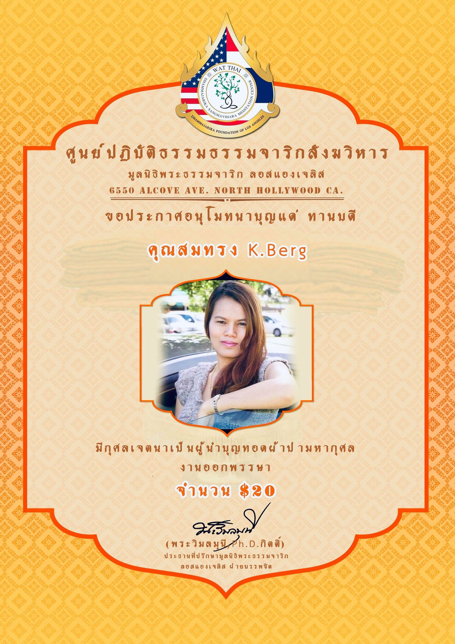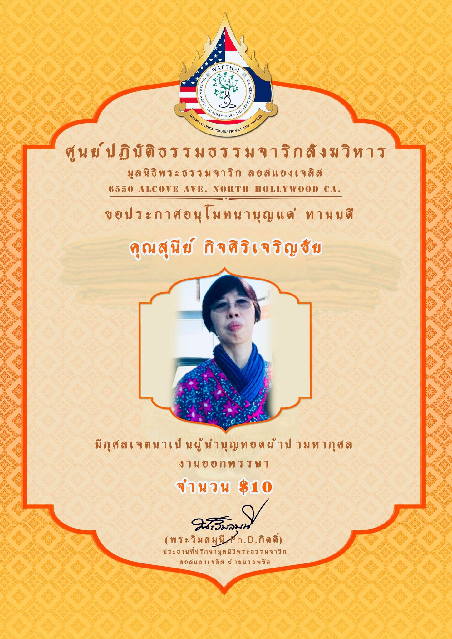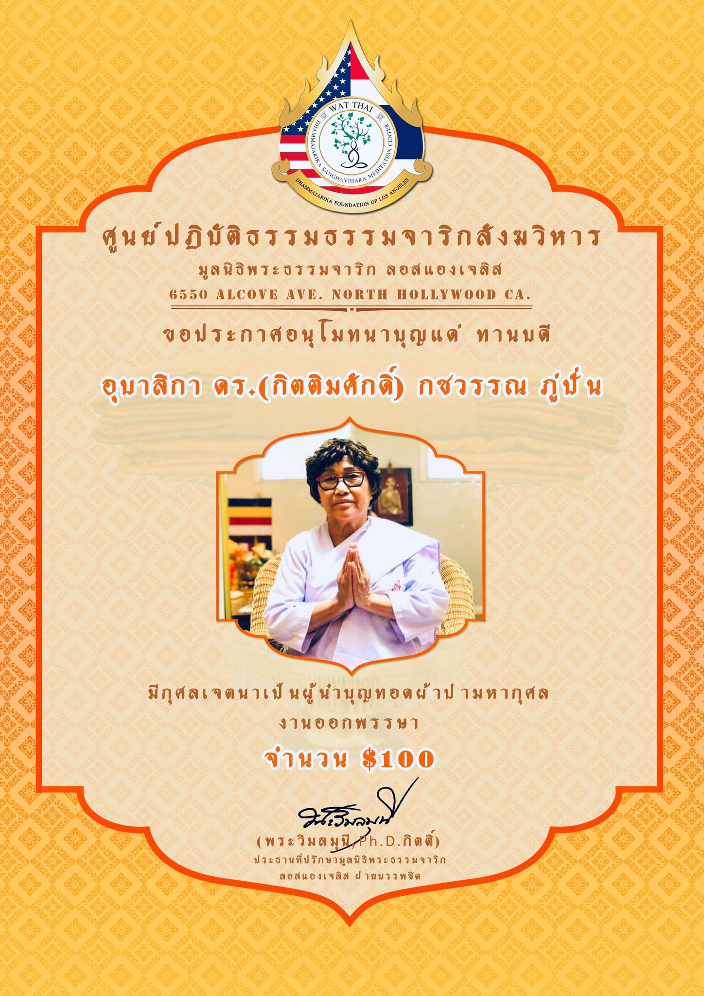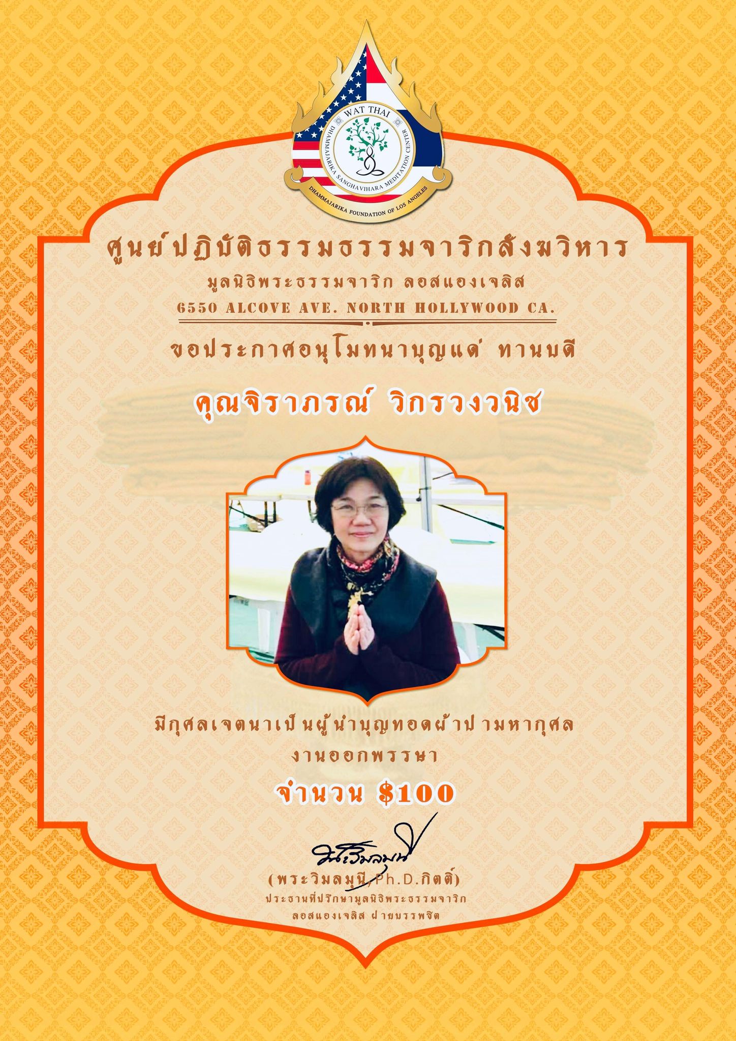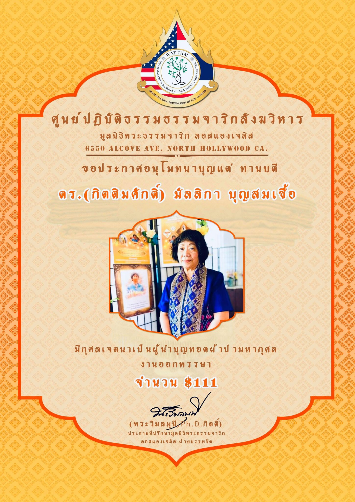 ในนามของคณะสงฆ์ คณะอุบาสกอุบาสิกา คณะทำงานศูนย์ปฏิบัติธรรมธรรมจาริกสังฆวิหาร มูลนิธิพระธรรมจาริก ลอสแองเจลิส เมือง North Hollywood California ขอประกาศอนุโมทนาบุญกับทานบดีเจ้าภาพ “คุณแม่สุชาดา ปทะวานิช” ที่รับเป็นประธานงานผ้าป่ามหากุศล วันออกพรรษา กองละ $1 จำนวน 3,000 กอง เพื่อจัดตั้ง “กองทุนนิธิสุชาดา เพื่อส่งเสริมและสนับสนุนการเผยแผ่พระพุทธศาสนาของศูนย์ปฏิบัติธรรมธรรมจาริกสังฆวิหาร” ................................................... ในการนี้ จึงขอเรียนเชิญทุกท่านร่วมบุญ “ทอดผ้าป่ามหากุศล งานออกพรรษา” ในวันพฤหัสบดี ที่ 1 ตุลาคม 2563 ณ ศูนย์ปฏิบัติธรรมธรรมจาริกสังฆวิหาร เมือง North Hollywood California USA. สามารถร่วมบุญทอดผ้าป่า กองละ $1 หรือตามจิตศรัทธา ....................................................... ติดต่อสอบถามได้ พระครูพิศาลธรรมจารี พระครูวินัยธรบุณยกร ปิยสีโล มูลนิธิพระธรรมจาริก ลอสแองเจลิส 6550 Alcove Ave. North Hollywood CA. 91606. www.Dhammajarika.Org