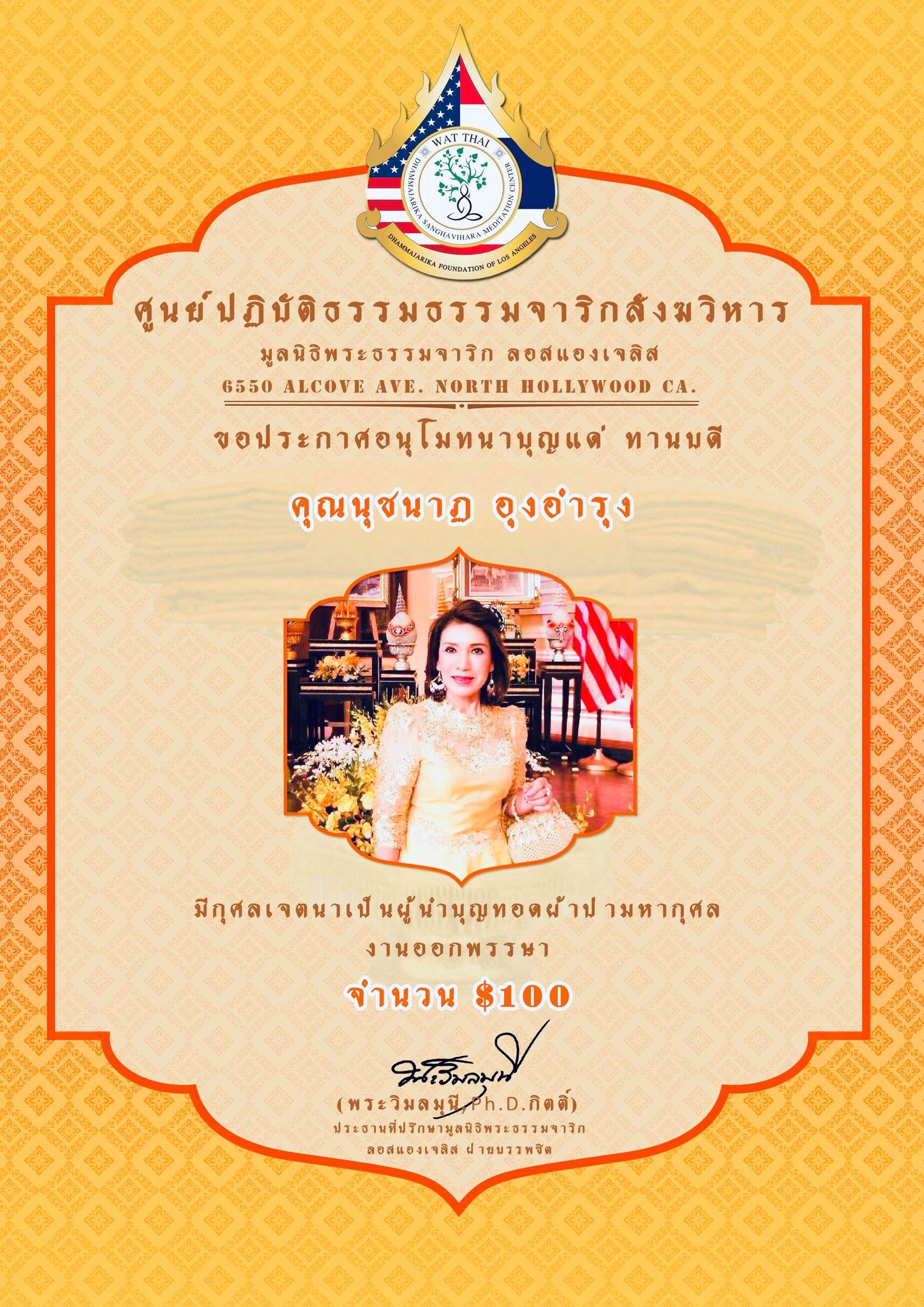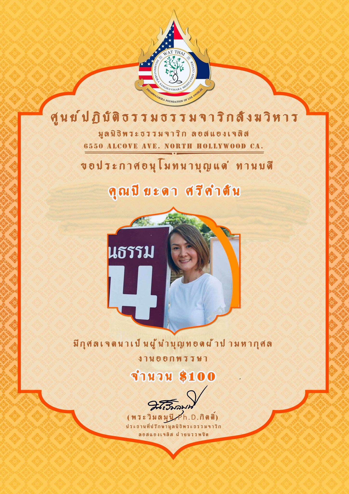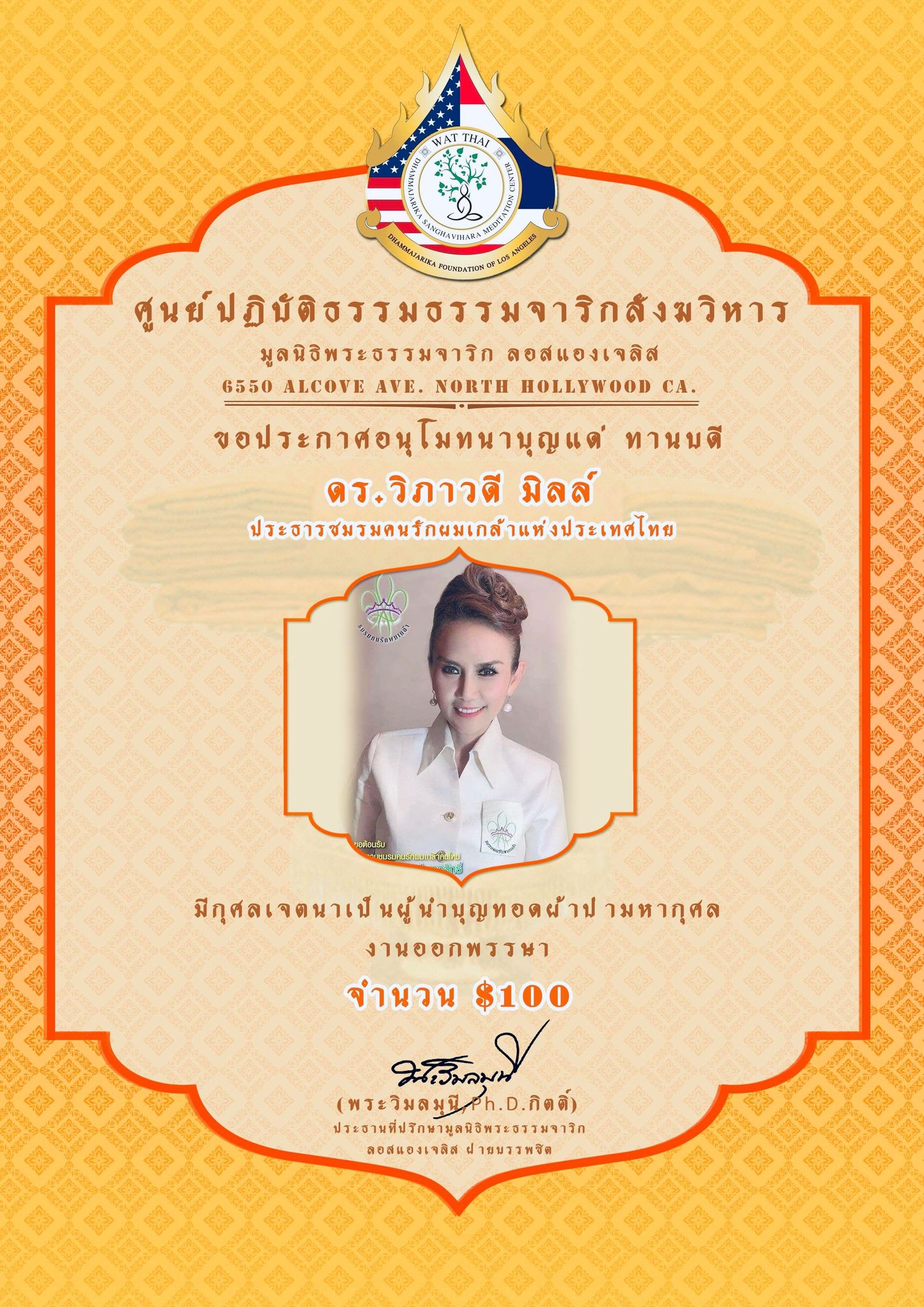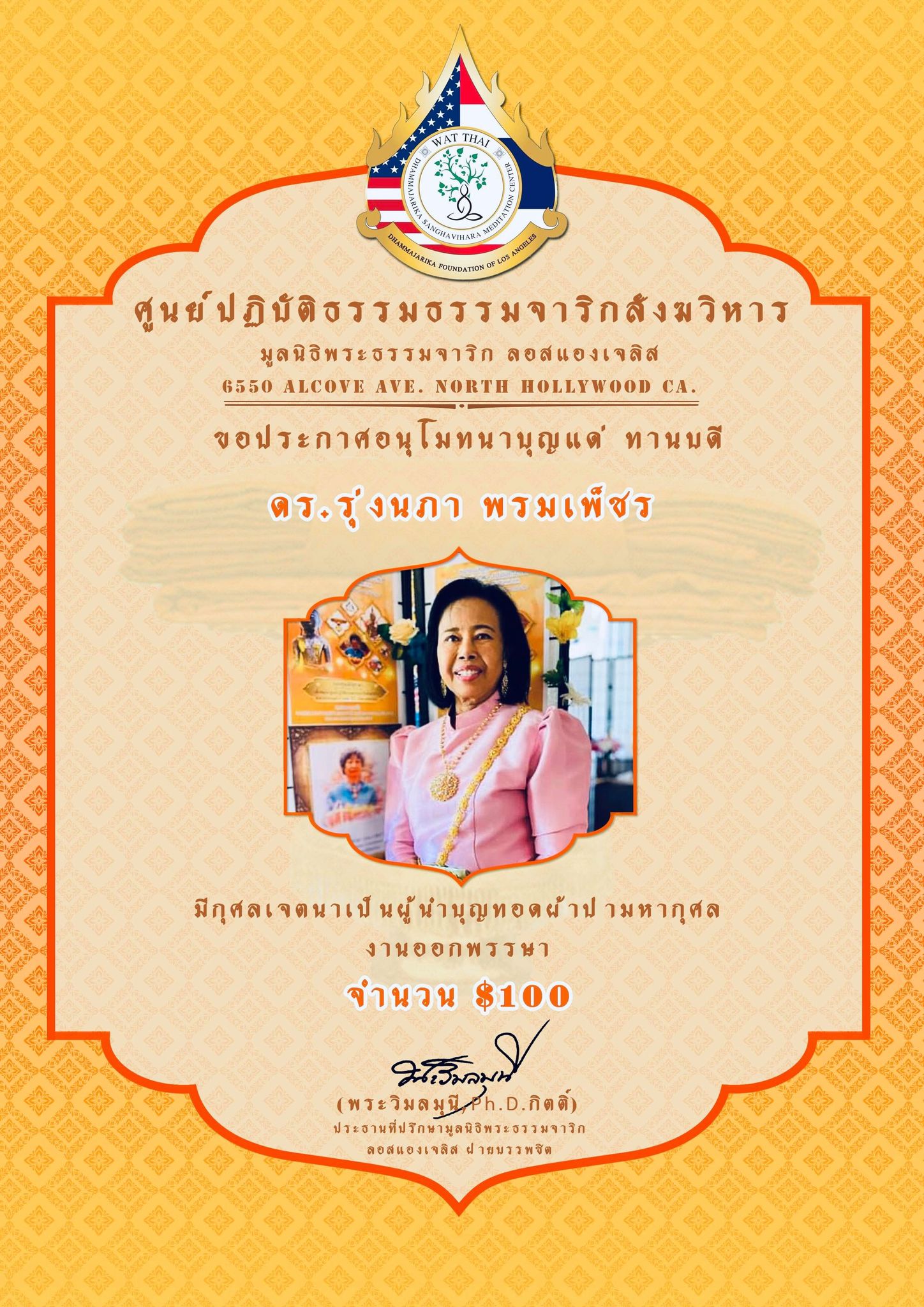 ในนามของคณะสงฆ์ คณะอุบาสกอุบาสิกา คณะทำงานศูนย์ปฏิบัติธรรมธรรมจาริกสังฆวิหาร มูลนิธิพระธรรมจาริก ลอสแองเจลิส เมือง North Hollywood California ขอประกาศอนุโมทนาบุญกับทานบดีเจ้าภาพ “คุณแม่สุชาดา ปทะวานิช” ที่รับเป็นประธานงานผ้าป่ามหากุศล วันออกพรรษา กองละ $1 จำนวน 3,000 กอง เพื่อจัดตั้ง “กองทุนนิธิสุชาดา เพื่อส่งเสริมและสนับสนุนการเผยแผ่พระพุทธศาสนาของศูนย์ปฏิบัติธรรมธรรมจาริกสังฆวิหาร” ................................................... ในการนี้ จึงขอเรียนเชิญทุกท่านร่วมบุญ “ทอดผ้าป่ามหากุศล งานออกพรรษา” ในวันพฤหัสบดี ที่ 1 ตุลาคม 2563 ณ ศูนย์ปฏิบัติธรรมธรรมจาริกสังฆวิหาร เมือง North Hollywood California USA. สามารถร่วมบุญทอดผ้าป่า กองละ $1 หรือตามจิตศรัทธา ....................................................... ติดต่อสอบถามได้ พระครูพิศาลธรรมจารี พระครูวินัยธรบุณยกร ปิยสีโล มูลนิธิพระธรรมจาริก ลอสแองเจลิส 6550 Alcove Ave. North Hollywood CA. 91606. www.Dhammajarika.Org