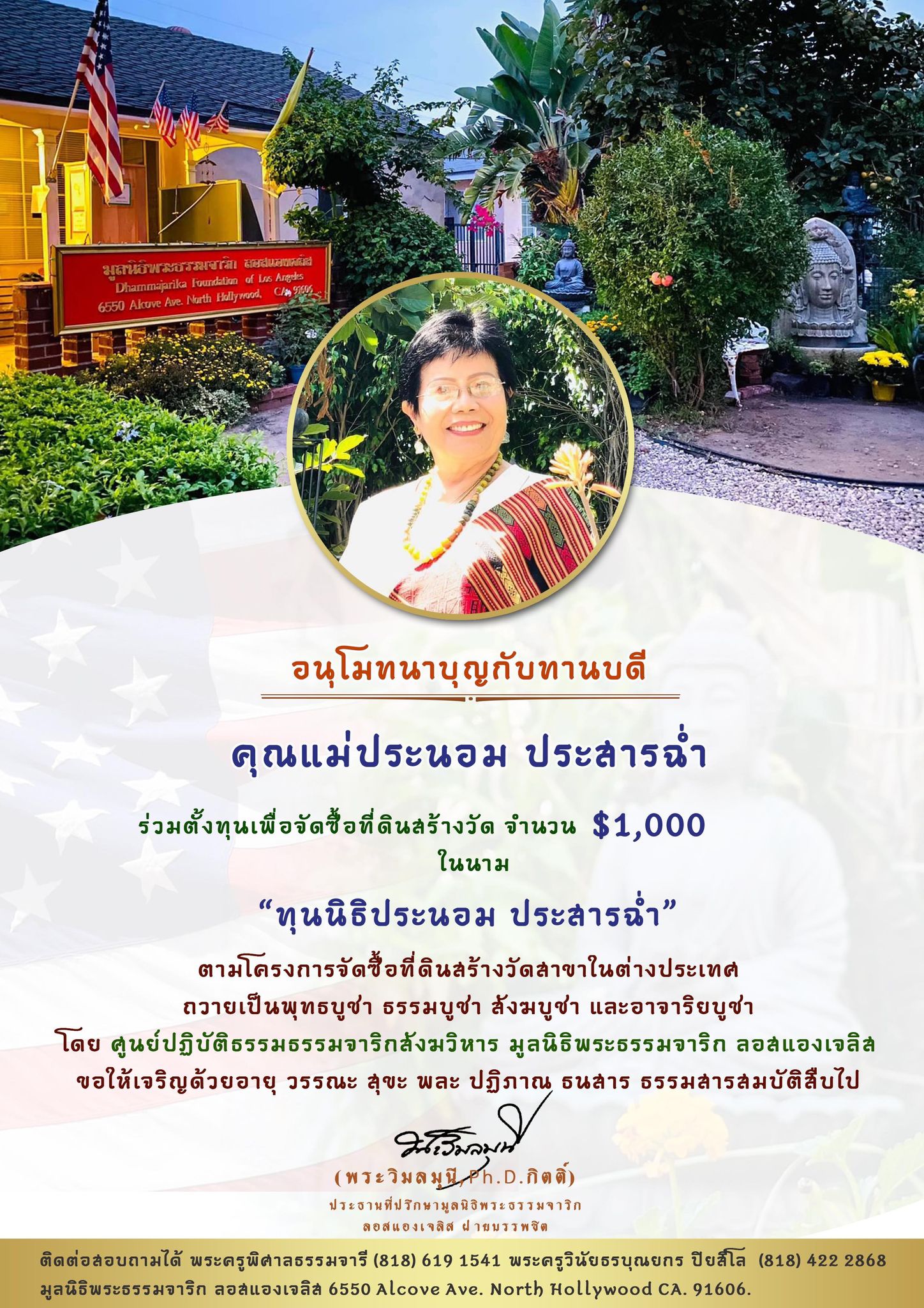(6) อุบาสิกาประนอม ประสารฉ่ำ จำนวน $1,000