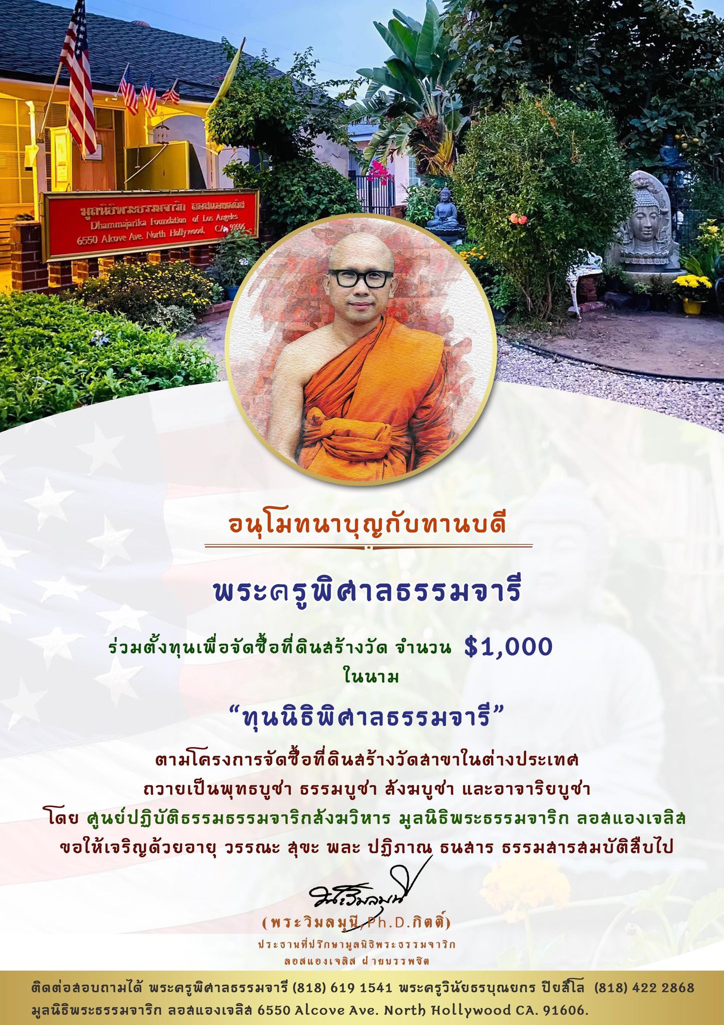 (1) พระครูพิศาลธรรมจารี จำนวน $1,000