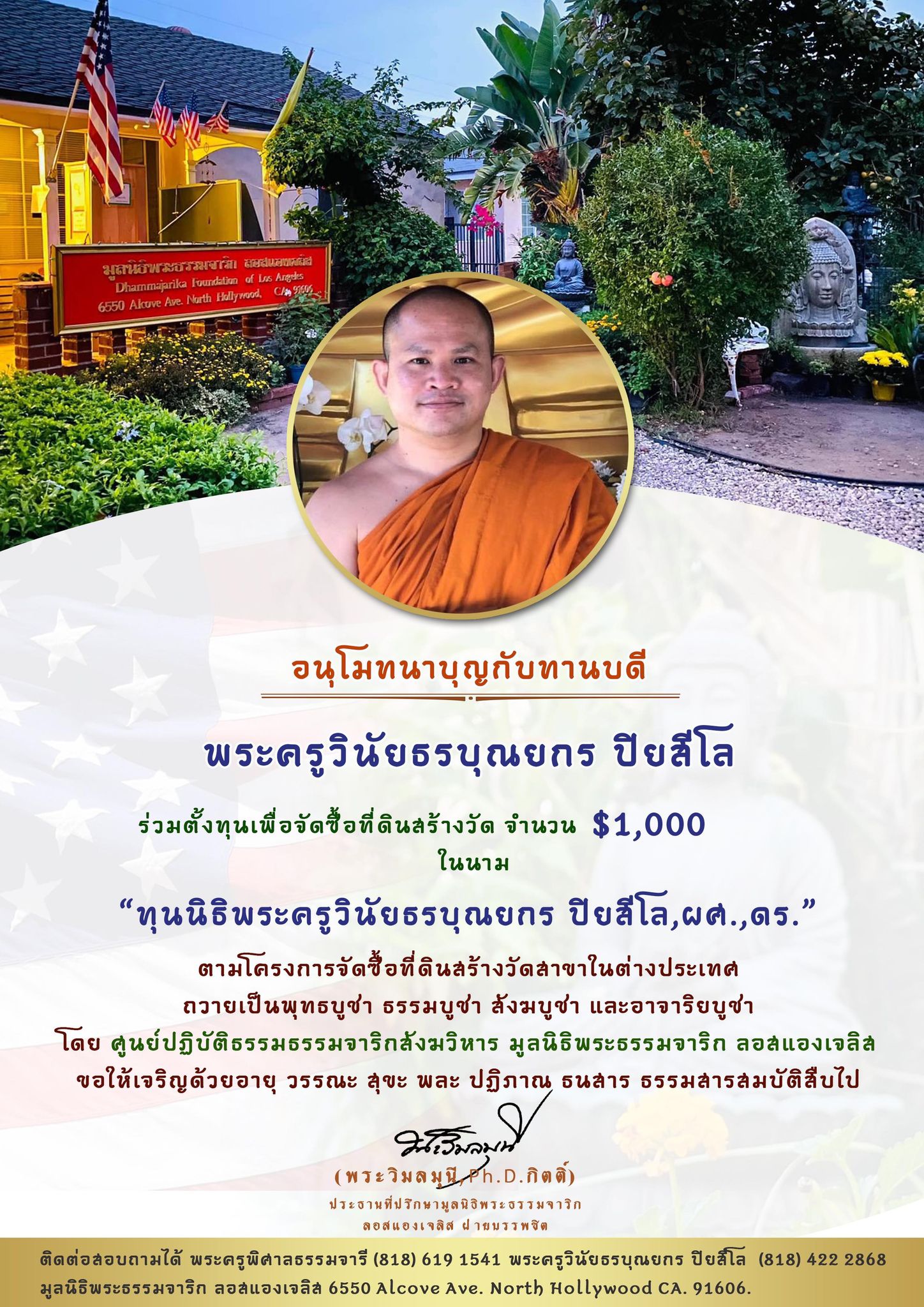 (2) พระครูวินัยธรบุณยกร ปิยสีโล จำนวน $1,000